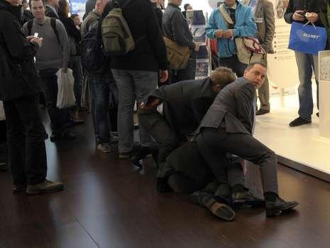 Εντύπωση προκαλεί το γεγονός ότι στα Γερμανικά Μέσα Ενημέρωσης δεν υπάρχουν εικόνες που να απεικονίζουν το νεαρό Γερμανό να πετάει στον αντικαγκελάριο της Γερμανίας Φίλιπ Ρέσλερ το γιαούρτι.Ο υπουργός Οικονομίας είχε επισκεφθεί ως επίσημος προσκεκλημένος τη -γνωστή στη Γερμανία- έκθεση ηλεκτρονικών υπολογιστών CeBIT. Και ενώ ο κ. Ρέσλερ περιφερόταν στους διαδρόμους του εκθεσιακού χώρου, ένας άγνωστος άνδρας νεαρής ηλικίας φώναξε απευθυνόμενος στον αντικαγκελάριο “Κύριε Ρέσλερ…”, τον άρπαξε από το λαιμό και στη συνέχεια του πέταξε ένα κομμάτι τούρτα.Οι άδρες της ασφάλειας του υπουργού Οικονομικών όρμηξαν στον νεαρό άντρα -που όπως απεδείχθη ήταν Βερολινέζος- τον ακινητοποίησαν και στη συνέχεια τον οδήγησαν στο αστυνομικό τμήμα Ανοβέρου.O 26χρονος άντρας προς το παρόν δεν διώκεται ποινικά ενώ οι λόγοι για τους οποίους επιτέθηκε στον Ρέσλερ δεν έχουν ακόμη διευκρινιστεί.Αυτό που προκαλεί εντύπωση ωστόσο είναι ότι εκτός από δύο φωτογραφίες δεν υπάρχει -τόσο στις γερμανικές ιστοσελίδες όσο και στα sites καναλιών της γερμανικής τηλεόρασης- υλικό από την επίθεση, ενώ “κυκλοφορούν” φήμες περί λογοκρισίας του εν λόγω υλικού.Υπενθυμίζεται ότι το υπουργείο Οικονομικών και η Γερμανική Βουλή είχε παρέμβει προκειμένου να απαγορευτούν όλες οι οι φωτογραφίες που απεικόνιζαν τον υπουργό Οικονομικών της Γερμανίας, Βόλφγκανγκ Σόιμπλε να παίζει Sudoku.