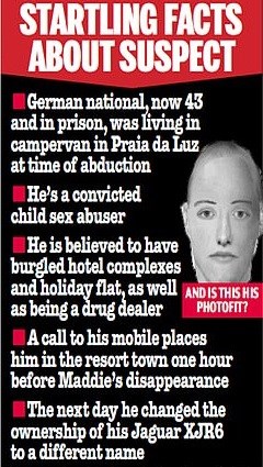 Η σεξουαλική επίθεση κατά της 72χρονης μπορεί να είναι σημαντική επειδή ο καταδικασμένος παιδόφιλος είχε διαρρήξει το κατάλυμα στο οποίο διέμενε το θύμα του και επειδή η αστυνομία πιστεύει εδώ και πολύ καιρό ότι η Μάντι απήχθη από το κρεβάτι της στη διάρκεια διάρρηξης. Ο άνδρας διέμενε για 12 χρόνια σε νοικιασμένο αγρόκτημα έξω από την Πραΐα ντα Λουζ αλλά είχε μετακομίσει σε ένα τροχόσπιτο προτού εξαφανιστεί η Μάντι. Ένας πρώην γείτονας είπε ότι το σπίτι του είχε καθαριστεί αφού έφυγε και περιείχε διάφορους σπασμένους υπολογιστές και έναν μαύρο κάδο όπου μέσα υπήρχαν “περούκες και εξωτικά ρούχα”. Ο άνδρας που για πρώτη φορά πήγε στην Πορτογαλία στα 18 του χρόνια, το 1995, εκτίει την επταετή ποινή του εδώ και έναν χρόνο αλλά κάνει έφεση ζητώντας την έκδοσή του. Σύμφωνα με πληροφορίες εκτίει ήδη μεγαλύτερη ποινή για ένα έγκλημα το οποίο δεν έχει αποκαλυφθεί. Ο Κρίστιαν Χοπ, επικεφαλής του Τμήματος Εγκλημάτων της Γερμανικής Ομοσπονδιακής Αστυνομίας περιέγραψε τον έγκλειστο ως λευκό, κοντοκουρεμένο ξανθό άνδρα, ύψους περίπου 1,83 ενώ προσέφερε αμοιβή 10.000 ευρώ σε όποιον έχει πληροφορίες που μπορεί να οδηγήσουν στη δίωξή του. Ωστόσο, υπάρχουν ανησυχίες ότι οι αυστηροί γερμανικοί νόμοι που προστατεύουν την ανωνυμία του υπόπτου, μπορεί να καθυστερήσουν την έρευνα γιατί μάρτυρες δεν γνωρίζουν την ταυτότητά του. Η Σκότλαν Γιαρντ είπε ότι ένας άνδρας με κοντά, ξανθιά μαλλιά εθεάθη να παραμονεύει κοντά στο διαμέρισμα όπου διέμενε η Μαντλίν με την οικογένειά της απ’ όπου και απήχθη η 3χρονη. Οι ντετέκτιβ είπαν ότι ένα σκίτσο του άνδρα που δημοσιεύθηκε το 2013 δεν αποκλείεται υπονοώντας ότι μπορεί αυτός να μοιάζει με τον νέο ύποπτο.