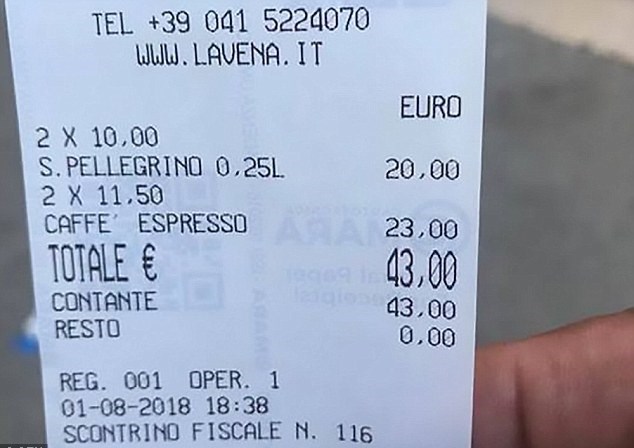 Έκπληκτος αντίκρισε τον λογαριασμό τουρίστας καθώς ο καφές που απόλαυσε σε καφετέρια στην πλατεία Αγίου Μάρκου στη Βενετία του βγήκε φαρμάκι. Δύο καφέδες και δύο μπουκαλάκια νερό κόστισαν 43 ευρώ.