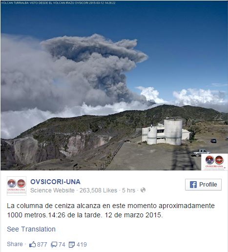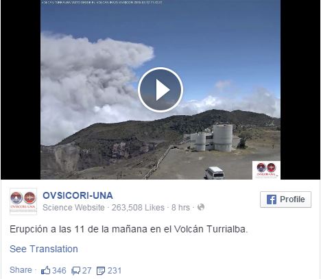 Σύμφωνα με το Παρατηρητήριο Ηφαιστειολογίας και Σεισμολογίας του τοπικού Εθνικού Πανεπιστημίου, από μια ακόμη έκρηξη που αναμένεται, θα σχηματιστεί σύννεφο καπνού πάνω από ένα μίλι που θα κινηθεί στην επιφάνεια της θάλασσας και θα απλώσει τέφρα πάνω από αρκετές πόλεις. Το ηφαίστειο Τουριάλπμα εξερράγη δυο φορές την Κυριακή ενώ ακολούθησε μια πιο μεγάλη έκρηξη την Τετάρτη.
