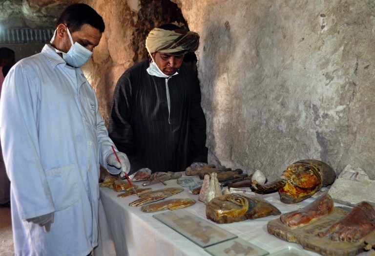 “Ήταν έκπληξη που ανακαλύφθηκαν τόσα ευρήματα στο εσωτερικό (του τάφου): σκεύη από άργιλο που φέρουν το όνομα του ιδιοκτήτη του τάφου, σαρκοφάγοι και μούμιες, καθώς και περισσότερα από χίλια ‘ουσέμπτι’, μικρά ταφικά αγαλματίδια που τοποθετούνταν μέσα στους τάφους”, ανακοίνωσε ο υπουργός Αρχαιοτήτων Χάλεντ αλ-Ανάνι κατά τη διάρκεια επίσκεψης στον τάφο που οργανώθηκε για τους δημοσιογράφους. “Ήταν σημαντική ανακάλυψη, η οποία δεν έχει τελειώσει”, πρόσθεσε.