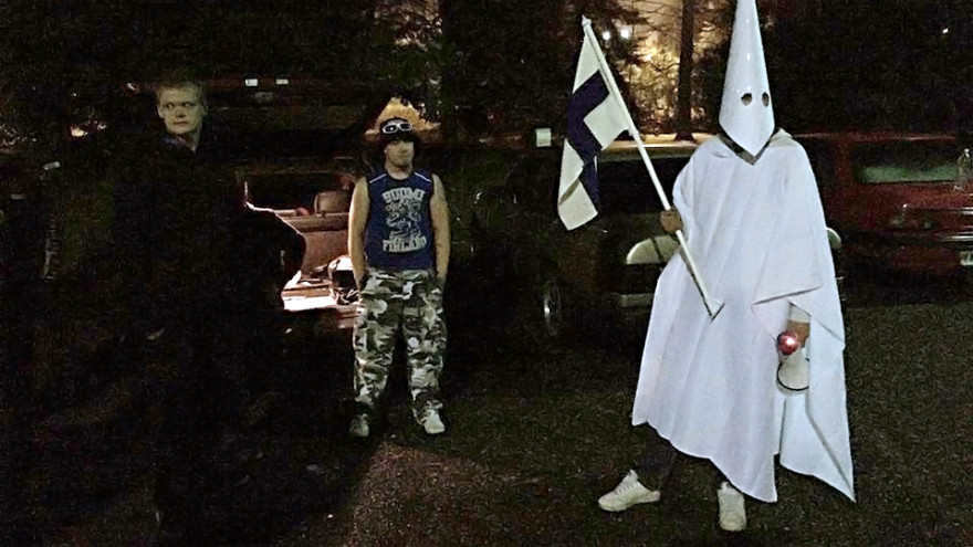 Το Yle επίσης δημοσιεύει στην ιστοσελίδα του τη φωτογραφία ενός διαδηλωτή ντυμένου όπως τα μέλη της αμερικανικής ρατσιστικής οργάνωσης Κου Κλουξ Κλαν, με τη γνωστή κωνική λευκή μάσκα που καλύπτει όλο το κεφάλι, ο οποίος κρατά τη φινλανδική σημαία και φωνάζει υβριστικά συνθήματα. Δεν υπήρξαν τραυματισμοί και δύο διαδηλωτές συνελήφθησαν, μετέδωσε το φινλανδικό πρακτορείο ειδήσεων STT.