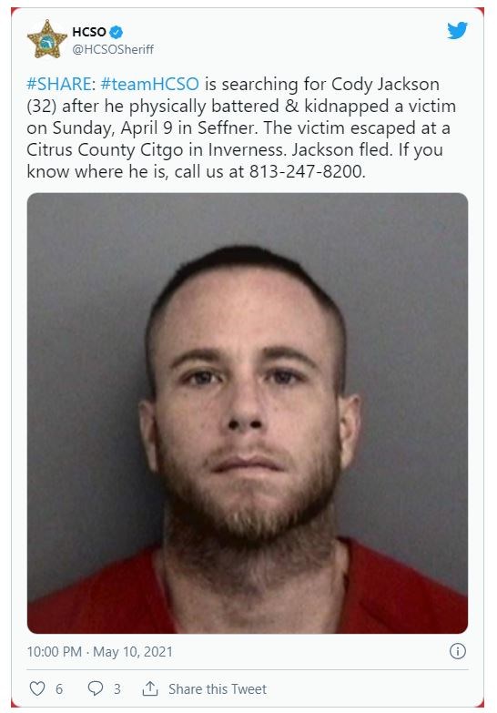 “Είδε την κοπέλα που την είχε δεμένη στο αυτοκίνητο να απελευθερώνεται και αυτός άρχισε να τρέχει. Καθώς έτρεχε έξω από την κεντρική είσοδο, εκείνη ήρθε στην ιδιωτική πόρτα που ήταν κλειδωμένη. Χτυπούσε και φώναζε ‘βοήθεια, βοηθήστε με! Θα με σκοτώσει! Είναι εκεί, είναι εκεί!” Και βιάστηκα να ξεκλειδώσω την πόρτα και την τράβηξα μέσα και μετά κλείδωσα ξανά την πόρτα” περιέγραψε η ταμίας που αμέσως κάλεσε την αστυνομία και περιποιήθηκε την τραυματισμένη γυναίκα. “Είχε καλώδια γύρω από τα χέρια της και μπλεγμένα μαλλιά γεμάτα αίμα και το μόνο που σκεφτόμουν ήταν να την κρατήσω ασφαλή μέσα στο κατάστημα μαζί μου”. Ενώ το θύμα ανάρρωνε στο νοσοκομείο, η αστυνομία εξέδωσε επείγουσα έκκληση για τον εντοπισμό του απαγωγές που θεωρείται ένοπλος και επικίνδυνος. Το αυτοκίνητό του εντοπίστηκε στην Τάμπα, κοντά στο σημείο της απαγωγής. “Αυτή η επίθεση ήταν στοχευμένη. Ωστόσο, δεδομένης της βίαιης συμπεριφοράς του Τζάκσον, καλούμε τον καθένα με τον οποίο μπορεί να επικοινωνήσει μαζί του, να μας ενημερώσει αμέσως” είπε ο σερίφης Τσαντ Κρόνιστερ.