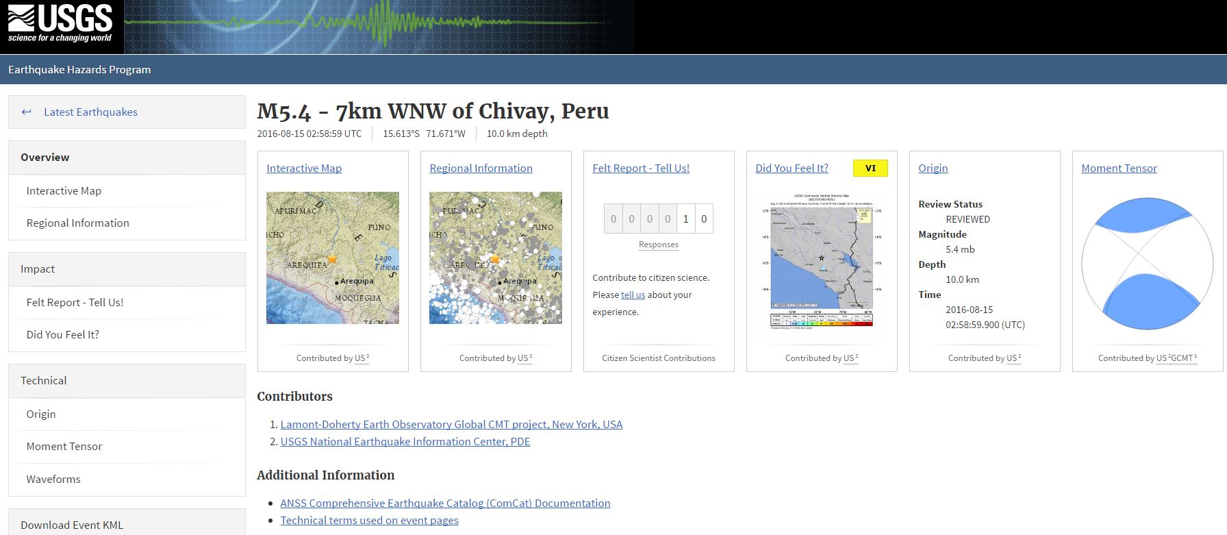 Σύμφωνα με το γεωφυσικό ινστιτούτο του Περού, το επίκεντρο του σεισμού εντοπίστηκε σε απόσταση 10 χιλιομέτρων από το Σιβάι, την πρωτεύουσα της επαρχίας Καϊγιόμα και το εστιακό του βάθος υπολογίζεται σε μόνον 8 χιλιόμετρα.
