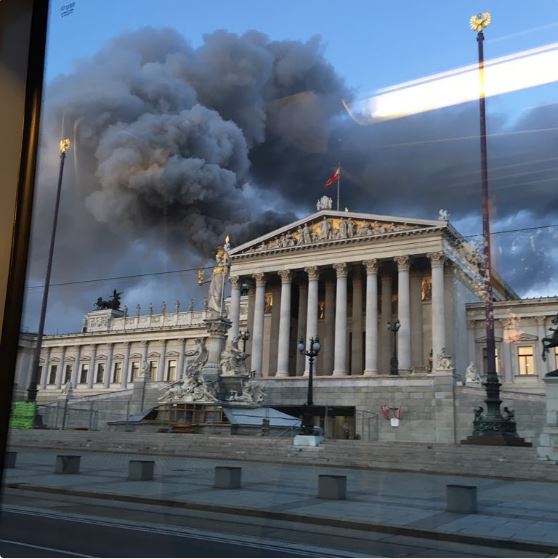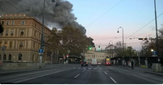 Οι καπνοί από τη φωτιά σκέπασαν τον ουρανό πάνω από το κτίριο της Αυστριακής Βουλής, ενώ δεκάδες πυροσβεστικά με 70 πυροσβέστες έσπευσαν για την κατάσβεση.
