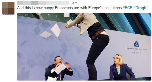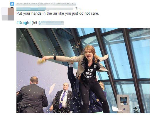 “Φωτιά” πήρε το twitter λίγα λεπτά μετά την επίθεση της διαδηλώτριας στον Πρόεδρο της ΕΚΤ, Μάριο Ντράγκι.