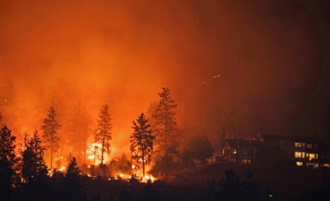 Raging wildfires spreads in Kelowna, BC, Canada.