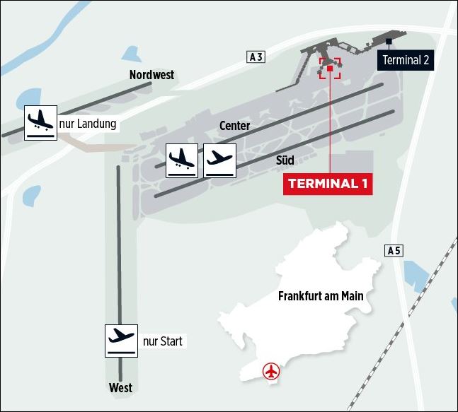 Τμήματα του τερματικού σταθμού 1 στο αεροδρόμιο της Φρανκφούρτης έχουν εκκενωθεί, όπως φαίνεται και στο σχέδιο, μετά την είσοδο ενός επιβάτη στην αίθουσα αναχωρήσεων του μεγαλύτερου αεροδρομίου της Γερμανίας χωρίς να έχει ολοκληρωθεί ο πλήρης έλεγχος ασφαλείας από τον οποίο περνούσε, ανακοίνωσε η Fraport, η διαχειρίστρια εταιρία του αερολιμένα.