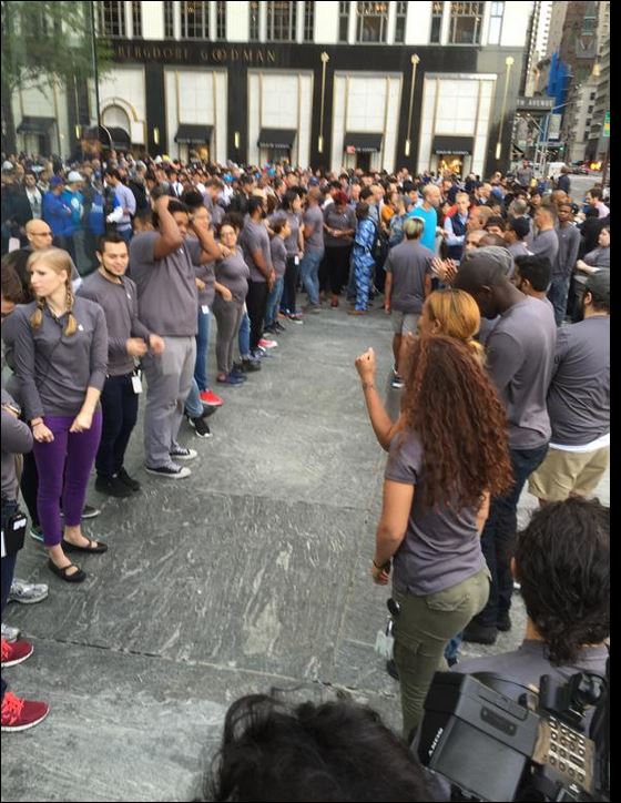 Ωστόσο οι εκατοντάδες πελάτες που είχαν προπαραγγείλει το νέο iPhone 6s ή το νέο iPhone 6s Plus ως επί το πλείστον αδιαφόρησαν για τη συγκέντρωση αυτή.