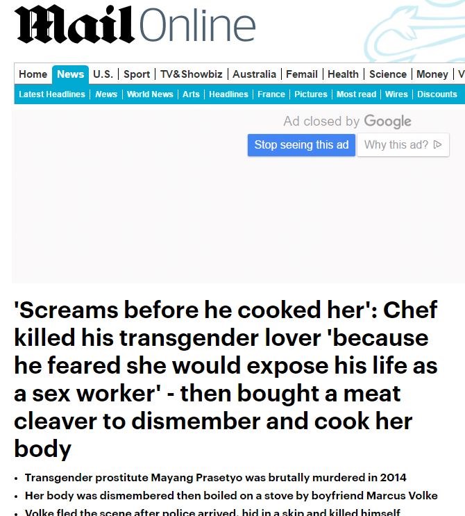 Σύμφωνα με την Courier Mail, ο Marcus Volke εκτός από σεφ εργαζόταν και σε οίκους ανοχής για να βγάλει περισσότερα χρήματα, όπως έκανε και η τρανσέξουαλ σύντροφος του Mayang Prasetyo. Λίγο πριν από το έγκλημα, το ζευγάρι τσακώθηκε, με την Mayang Prasetyo να απειλεί τον 27χρονο ότι εάν την εγκατέλειπε θα αποκάλυπτε στην οικογένεια του ότι εργάζεται σε οίκους ανοχής.