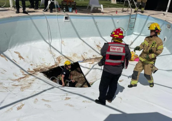 Κάτω από την πισίνα δημιουργήθηκε ένα τούνελ 15 μέτρων, με τις διασωστικές δυνάμεις που έσπευσαν στο σημείο, να εντοπίζουν τη σορό του άτυχου 32χρονου πολλές ώρες. Ένας ακόμη άνδρας που έπεσε στην τρύπα τραυματίστηκε ελαφρά στο κεφάλι και τα άκρα και έλαβε τις πρώτες βοήθειες.