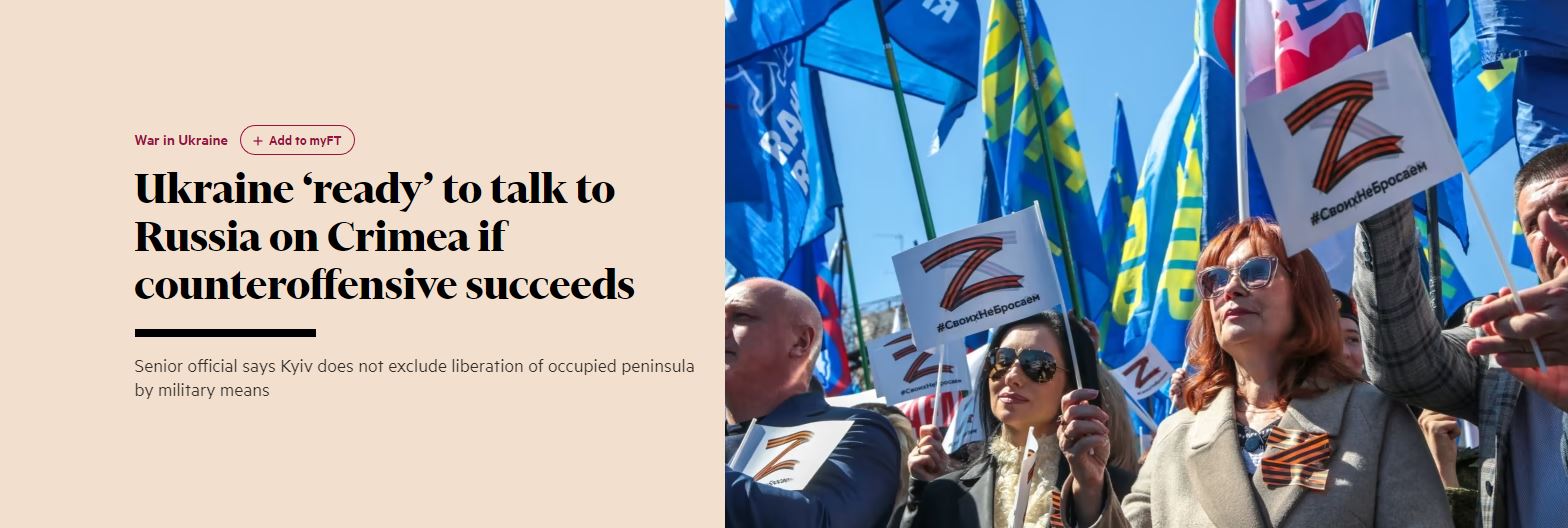 FT: «Παράθυρο» διαπραγμάτευσης για την Κριμαία από την Ουκρανία – Το μήνυμα συνεργάτη του Ζελένσκι