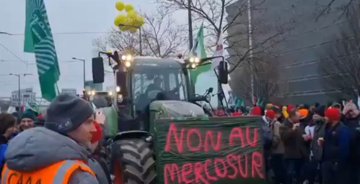 Η εμπορική συμφωνία θα σημάνει την εισαγωγή στην Ευρώπη τροφίμων που παράγονται «με εντελώς διαφορετικό τρόπο, με περισσότερα φυτοφάρμακα και χωρίς τους ίδιους κανόνες», είπε από την πλευρά του ο Μπατίστ Μαρί, γεωργός από το Μαρν.