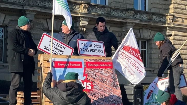 Η εμπορική συμφωνία θα σημάνει την εισαγωγή στην Ευρώπη τροφίμων που παράγονται «με εντελώς διαφορετικό τρόπο, με περισσότερα φυτοφάρμακα και χωρίς τους ίδιους κανόνες», είπε από την πλευρά του ο Μπατίστ Μαρί, γεωργός από το Μαρν.