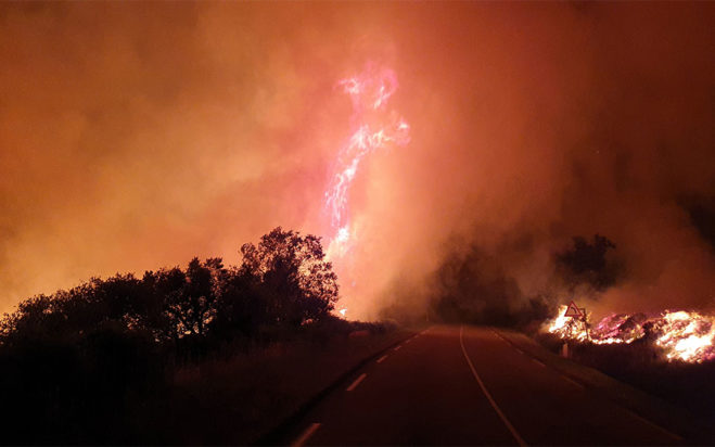 Σύμφωνα με τη νομαρχία Λαντ, η δασική πυρκαγιά βρίσκεται ακόμη σε εξέλιξη, αλλά η κατάσταση χαρακτηρίζεται βελτιωμένη τις τελευταίες ώρες. Όπως αναφέρει το δελτίο Τύπου, «μοιράστηκαν γεύματα και νερά σε όλους τους ταξιδιώτες» που είχαν αποκλειστεί, ενώ έγιναν οι απαραίτητες ενέργειες για να τους προσφερθεί προσωρινή φιλοξενία.