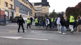 Μαθητές και εκπαιδευτικοί απομακρύνθηκαν περίπου στις 10:30 από το σχολείο, όπου ο Ντομινίκ Μπερνάρ δολοφονήθηκε με μαχαίρι πριν από λίγες ημέρες.