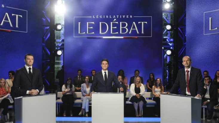 Στα ζητήματα της οικονομίας και γενικότερα της εσωτερικής πολιτικής ζωής της Γαλλίας επικεντρώθηκε το χθεσινό τηλεοπτικό ντιμπέιτ των εκπροσώπων των τριών βασικών πολιτικών σχηματισμών που κατέρχονται στις βουλευτικές εκλογές. Στην συζήτηση συμμετείχαν ο πρωθυπουργός Γκαμπριέλ Ατάλ για την απερχόμενη προεδρική πλειοψηφία, ο Ζορντάν Μπαρντελά, πρόεδρος του ακροδεξιού Εθνικού Συναγερμού (RN) της Λεπέν και ο συντονιστής της Ανυπότακτης Γαλλίας (LFI) Μανουέλ Μπομπάρ, εκπρόσωπος του συνασπισμού της Αριστεράς.