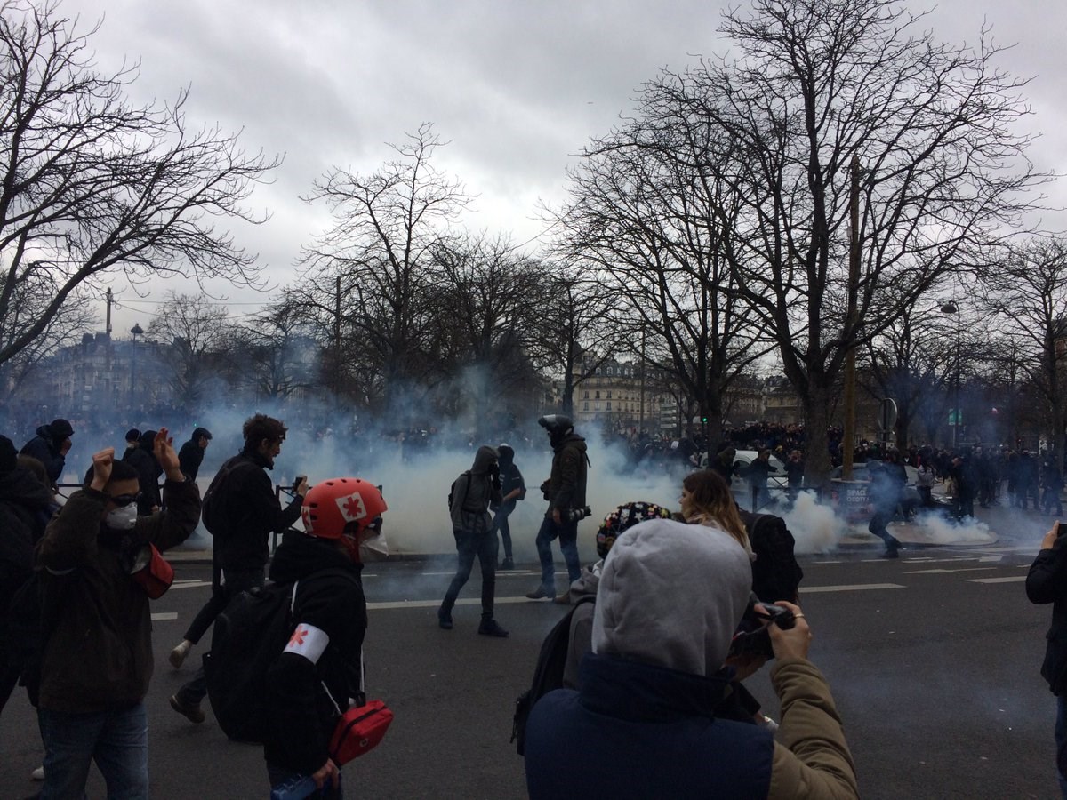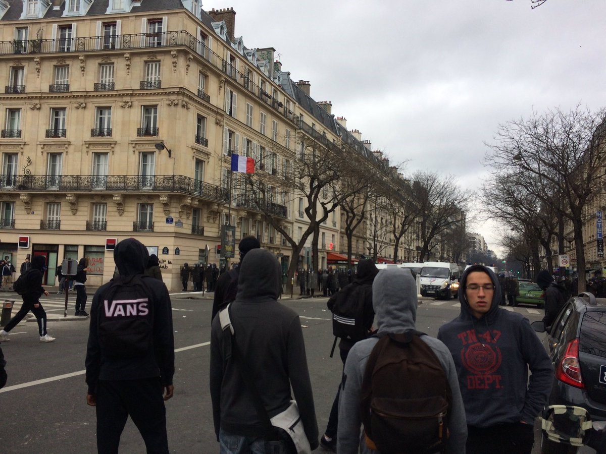 Σε ιστότοπους κοινωνικής δικτύωσης αναρτήθηκαν εικόνες από αψιμαχίες στο περιθώριο του συλλαλητηρίου στην Πλας ντε λα Νασιόν στο ανατολικό Παρίσι, όπου η αστυνομία επιτέθηκε σε ομάδες κουκουλοφόρων νεαρών με τους οποίους συγκρούστηκε σε παράδρομους.