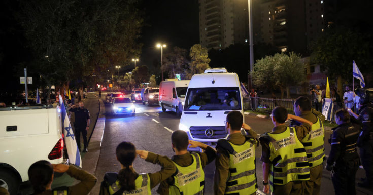 🟡 Four coffins of deceased hostages, escorted by IDF and ISA forces, crossed the border into the State of Israel a short while ago and are on their way to the National Institute for Forensic Medicine, where identification procedures will be carried out.
