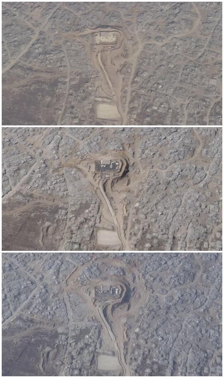 Εκεί, όπως δείχνουν δορυφορικές εικόνες, εκσκαφείς έχουν συγκεντρώσει το χώμα και τα ερείπια έτσι ώστε να σχηματισθούν ψηλά αναχώματα προστασίας για τους στρατιώτες. Ο ελεύθερος χώρος έχει ασφαλτοστρωθεί.