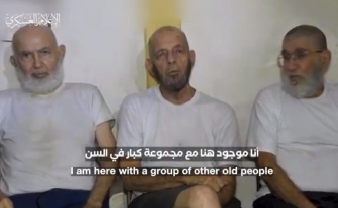 Σύμφωνα με ισραηλινά μέσα ενημέρωσης, οι τρεις όμηροι που εμφανίζονται καθισμένοι σε καρέκλες είναι ηλικίας από 79 μέχρι 84 ετών. Όλοι τους ζούσαν στο κιμπούτς Νιρ Οζ, μία από τις κοινότητες που έβαλε στο στόχαστρο η Χαμάς όταν επιτέθηκε στο νότιο Ισραήλ, στις 7 Οκτωβρίου.