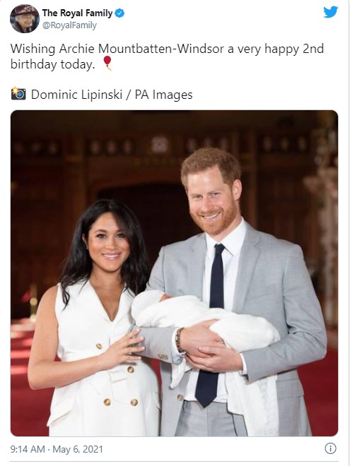 Ο γιος της Μέγκαν Μαρκλ και του πρίγκιπα Χάρι έχει σήμερα τα γενέθλιά του. Ο Άρτσι γιορτάζει τα δεύτερα γενέθλιά του και ήδη η βασιλική οικογένεια έχει στείλει τις ευχές της. Η βασίλισσα Ελισάβετ ευχήθηκε στο δισέγγονό της με μια χαριτωμένη φωτογραφία, ενώ το ίδιο έκανε και ο παππούς του, πρίγκιπας Κάρολος.