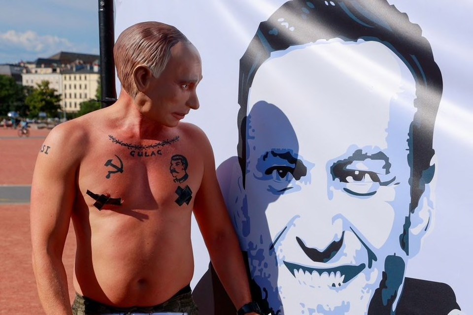 Όλα τα βλέμματα είναι στραμμένα στη Γενεύη, όπου θα πραγματοποιηθεί η πολυαναμενόμενη συνάντηση του Τζο Μπάιντεν με τον Βλαντιμίρ Πούτιν. Την Τρίτη, μεταξύ των διαδηλωτών, ήταν και ένας άνδρας ο οποίος, παριστάνοντας τον Ρώσο Πρόεδρο, ζητούσε την απελευθέρωση του επικριτή του Κρεμλίνου Αλεξέι Ναβάλνι. Όπως βλέπετε και στις φωτογραφίες, φορούσε στρατιωτικό παντελόνι και ήταν γυμνός από τη μέση και πάνω, δηλαδή όπως έχει εμφανιστεί σε πολλές φωτογραφίες από διακοπές του ο ίδιος ο Πούτιν. Ο Αλεξάντερ Λιουμπούσκιν φορούσε μια μάσκα με την μορφή του Πούτιν και καθόταν σε ένα παγκάκι μιας ηλιόλουστης πλατείας της Γενεύης προσποιούμενος ότι πίνει βότκα. Δίπλα του υπήρχε ένα ψεύτικο πιστόλι και ένα μπουκάλι που δήθεν περιείχε τον νευροτοξικό παράγοντα νόβιτσοκ, ο οποίος, σύμφωνα με Γερμανούς γιατρούς, χρησιμοποιήθηκε τον περασμένο χρόνο για την δηλητηρίαση του Ναβάλνι στη Σιβηρία. Βεβαίως, το Κρεμλίνο αρνείται ότι διέταξε την δηλητηρίαση του Ρώσου αντιφρονούντα.