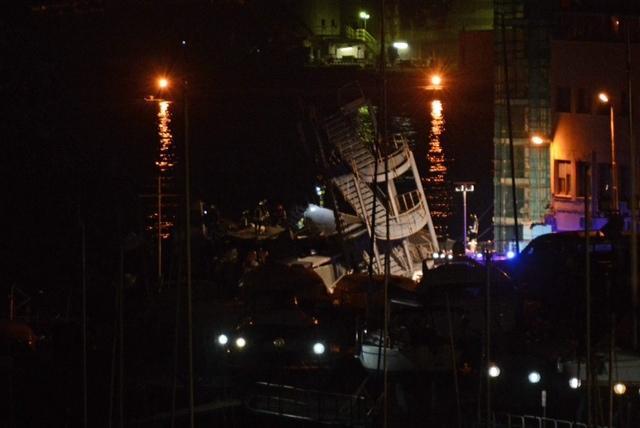 Ένα ελικόπτερο πετά συνεχώς πάνω από το μόλο του λιμανιού, φωτίζοντας το σημείο της θάλασσας όπου πρέπει να βρίσκονται οι αγνοούμενοι, ώστε να μπορέσουν να διευκολυνθούν οι συνεχείς προσπάθειες των δυτών.