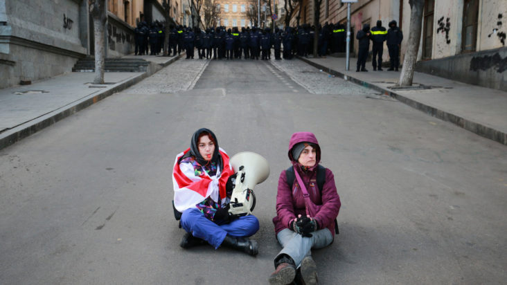 Η αστυνομία της Γεωργίας συνέλαβε δύο ηγέτες της αντιπολίτευσης κατά τη διάρκεια διαδήλωσης ενάντια στην κυβέρνηση, η οποία κατηγορείται για φιλορωσική αυταρχική παρέκκλιση και απομάκρυνση της χώρας από την Ευρωπαϊκή Ένωση. Ο ένας εκ των δύο αφέθηκε αργότερα ελεύθερος με εγγύηση.
