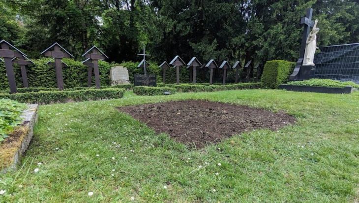 Ο βεβηλωμένος τάφος δεν φαινόταν σήμερα να είχε βεβηλωθεί, καθώς οι υπάλληλοι του νεκροταφείου έσκαψαν εκ νέου την επιφάνεια και την ίσιωσαν, αφού γέμισαν την τρύπα. Ο τάφος σήμερα είναι μια ορθογώνια περιοχή γης. Αρχικά είχε και τον σταυρό, αλλά αργότερα η γερμανική ασφάλεια τον αφαίρεσε και τον μετέφερε σε ειδικά εργαστήρια για περαιτέρω έρευνα. Η αστυνομία είπε απροσδιόριστα ότι «αντικείμενα» που βρέθηκαν στον τάφο κατασχέθηκαν ως αποδεικτικά στοιχεία. Ο σταυρός μπορεί επίσης να ήταν μέρος αυτών των αντικειμένων.