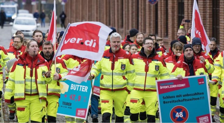 Αύριο εκτιμάται ότι περίπου 500.000 εργαζόμενοι σε σιδηροδρόμους, αεροδρόμια, αυτοκινητοδρόμους και λεωφορεία όλης της χώρας θα απεργήσουν, βυθίζοντας σε συγκοινωνιακό χάος μεγάλο μέρος της Γερμανίας. Σύμφωνα με ανακοίνωση των Γερμανικών Σιδηροδρόμων (DB), αύριο δεν θα πραγματοποιηθεί κανένα υπεραστικό δρομολόγιο, ενώ προβλήματα αναμένονται και σε πολλές περιφερειακές διαδρομές. Εκτός λειτουργίας θα μείνουν και τα αεροδρόμια της Φρανκφούρτης, του Αμβούργου, του Μονάχου και της Στουτγκάρδης. Η μεγαλύτερη ένωση γερμανικών αεροδρομίων ADV προειδοποίησε ότι τουλάχιστον 380.000 επιβάτες δεν θα εξυπηρετηθούν, λόγω της απεργιακής κινητοποίησης. Επιπλέον, σε απεργία έχουν κληθεί αύριο οι εργαζόμενοι στα λιμάνια και στους αυτοκινητοδρόμους. Πολλά τούνελ θα παραμείνουν κλειστά.