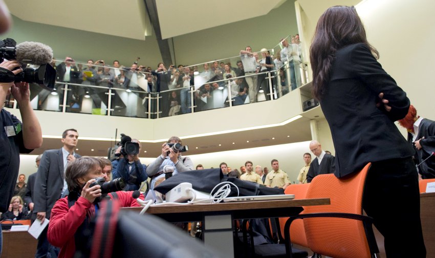 Η κατηγορούμενη, Μπεάτε Τσέπε, έχει γυρίσει την πλάτη στους φωτογράφους:
