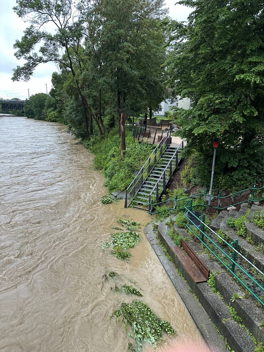 Überflutungsgefahr der Wertach in Augsburg-Pfersee (Luitpoldbrücke) #hochwasser #unwetter #wertach #augsburg pic.twitter.com/FZrwUVUqmM