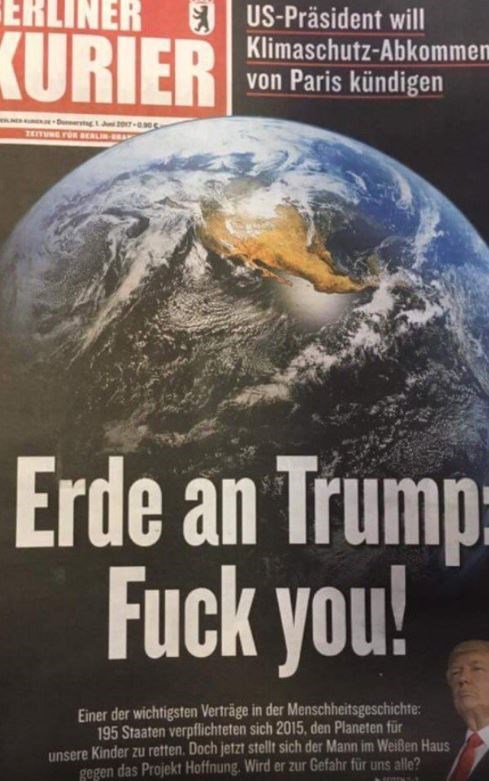 Με αυτό τον τίτλο η τοπική εφημερίδα του Βερολίνου προλόγιζε την απόφαση του Ντόναλντ Τραμπ για τη Συμφωνία του Παρισιού για το Κλίμα.