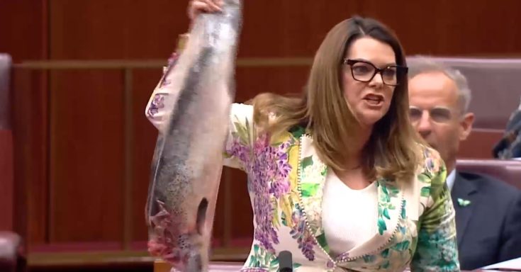 Στην Αυστραλία, η εκπρόσωπος των Πρασίνων για το περιβάλλον, Σάρα Χάνσον-Γιούνγκ, εμφανίστηκε στη Γερουσία με έναν νεκρό σολομό ως ένδειξη διαμαρτυρίας για νομοσχέδιο που βρισκόταν υπό συζήτηση.