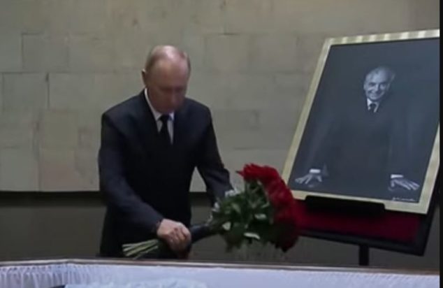 Νωρίτερα, το ανοιχτό φέρετρο του Μιχαήλ Γκορμπατσόφ επισκέφθηκε ο Βλαντίμιρ Πούτιν για να αποχαιρετήσει τον τελευταίο ηγέτη της Σοβιετικής Ένωσης. Όπως φαίνεται και στο βίντεο που δόθηκε στην δημοσιότητα, ο Ρώσος πρόεδρος είπε το τελευταίο αντίο στον Γκορμπατσόφ, κρατώντας ένα μπουκέτο με κόκκινα λουλούδια που εναπόθεσε στο ανοιχτό φέρετρο.