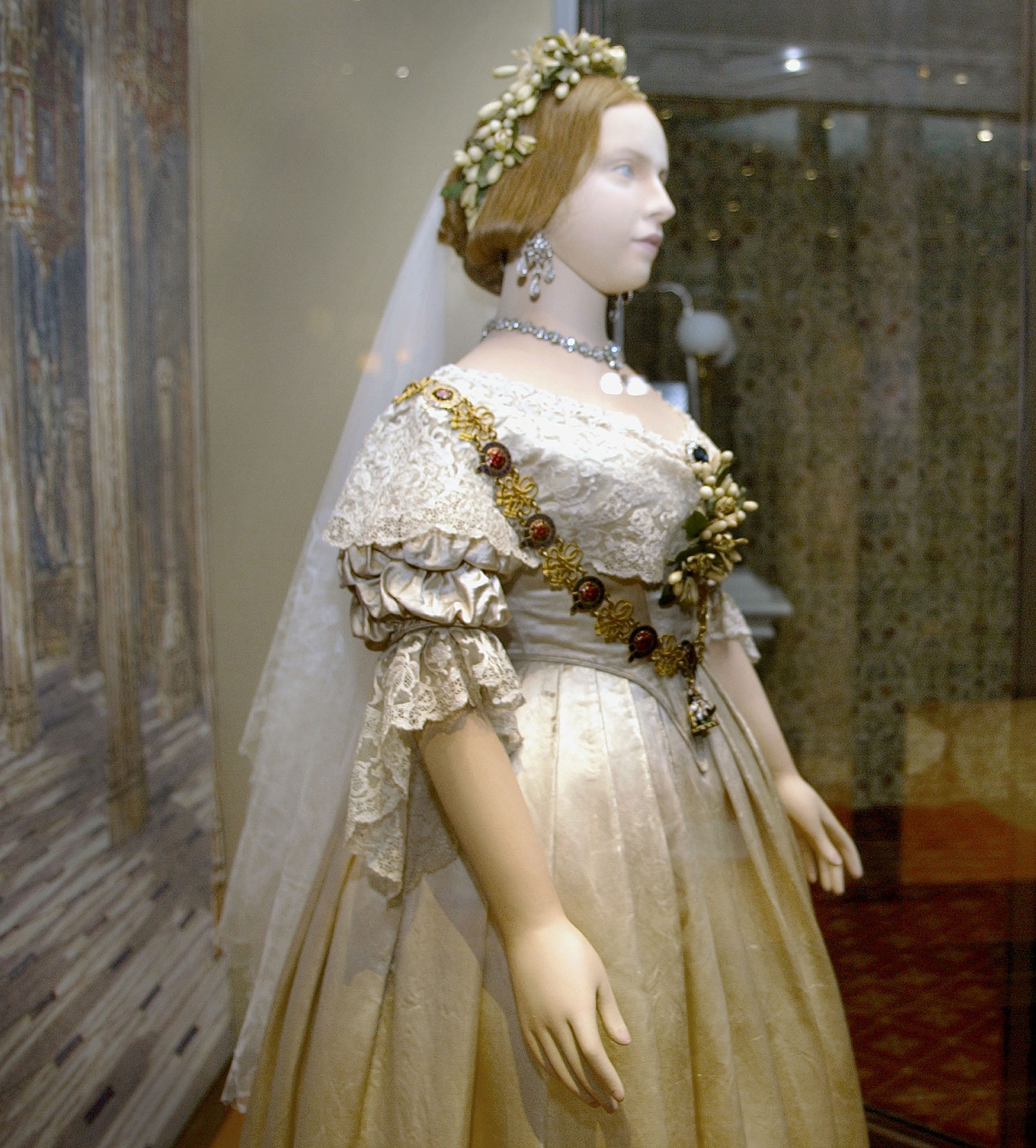 Η νεαρή τότε Βικτώρια, αποφάσισε να πάει κόντρα στην τάση της εποχής , επιλέγοντας ένα λευκό σατέν , δαντελωτό φόρεμα για το γάμο της.