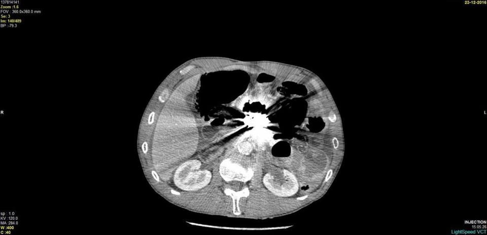 Την πέμπτη και χειρότερη φορά, πριν μερικούς μήνες, αποκαλύφθηκε ότι τα μεταλλικά αντικείμενα είχαν ανοίξει τρύπα στο στομάχι του. Οι γιατροί δήλωσαν έκπληκτοι που κάτι τέτοιο δεν είχε συμβεί πολύ πιο συχνά, αν λάβει κανείς υπόψη του τα κοφτερά αντικείμενα (π.χ. ξυραφάκια) που ο άνδρας κατάπινε. Αλλά, όπως είπαν, τα τοιχώματα του στομαχιού μπορεί τελικά να αποδειχθούν πολύ ανθεκτικά και να επουλώσουν τις πληγές τους.