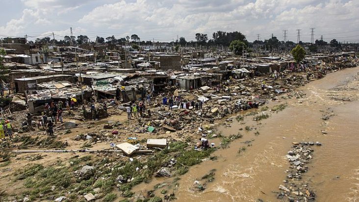 Η ξαφνική άνοδος της στάθμης του νερού αποτελεί σύνηθες φαινόμενο στη συνοικία αυτή του Γιοχάνεσμπουργκ, όπου οι καταιγίδες, σχεδόν κάθε βράδυ στη διάρκεια του καλοκαιριού, είναι συχνά ξαφνικές και βίαιες.