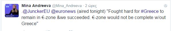 «Δώσαμε σκληρή μάχη για να παραμείνει η Ελλάδα στην ευρωζώνη και πετύχαμε. Η Ευρωζώνη δεν θα ήταν ολοκληρωμένη χωρίς την Ελλάδα».