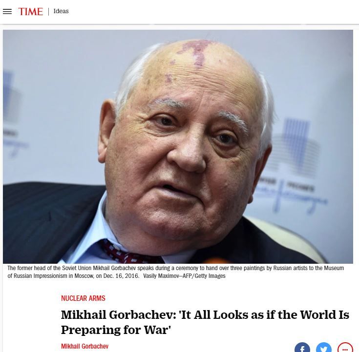 Για νέα πυρηνική απειλή που μοιάζει να είναι «πραγματική» προειδοποιεί ο Μιχαήλ Γκορμπατσόφ σε άρθρο του στο περιοδικό «Τime».