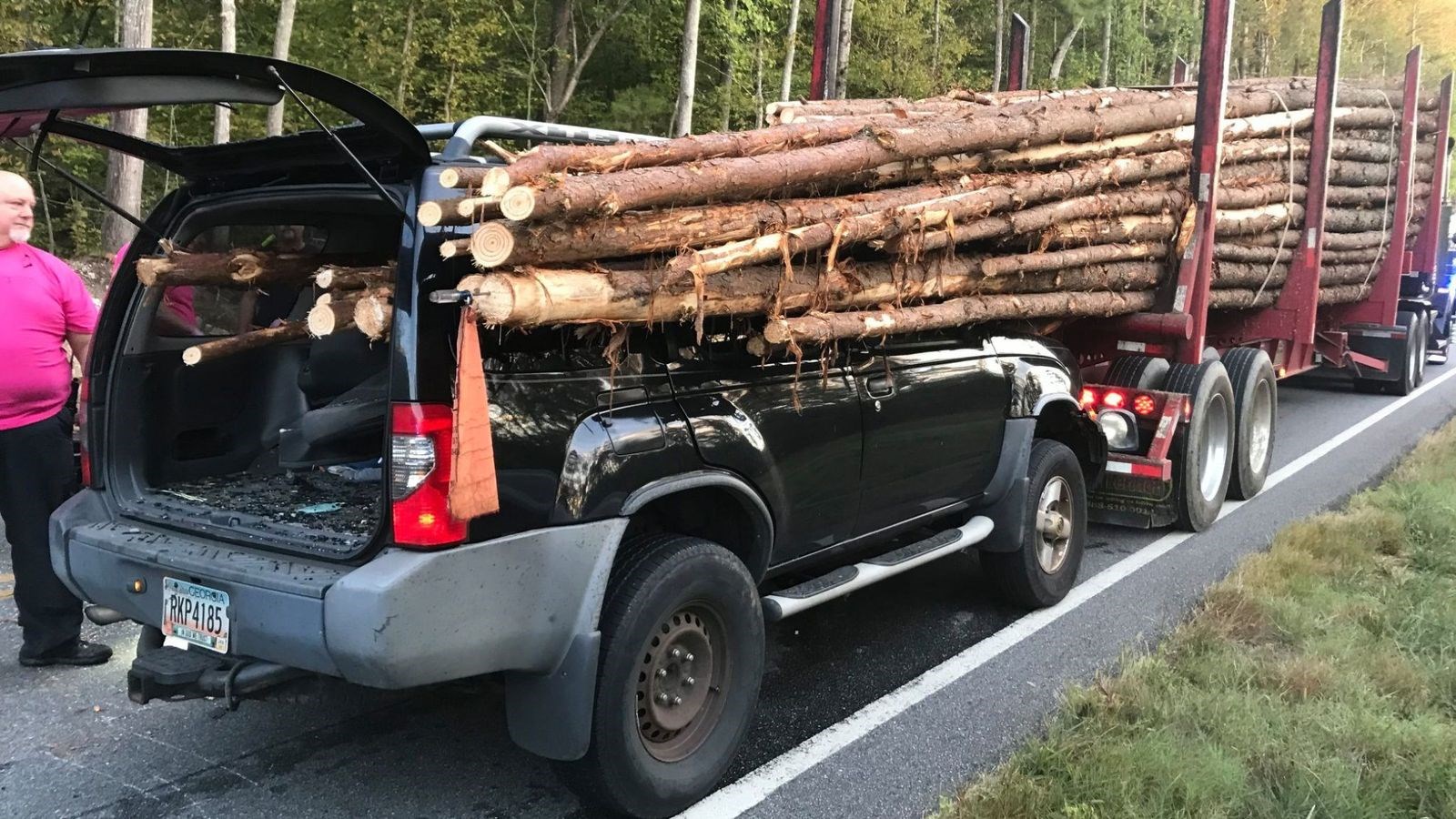 Το περιστατικό συνέβη στην Τζόρτζια των ΗΠΑ και οι φωτογραφίες που κάνουν τον γύρο του κόσμου σοκάρουν. Οι κορμοί έχουν διαλύσει εντελώς σχεδόν το αυτοκίνητο και ο οδηγός σώθηκε από θαύμα καθώς τη στιγμή της σύγκρουσης έσκυβε για να σηκώσει κάτι που του έπεσε και έτσι το κεφάλι του ήταν κάτω από το σημείο που διαπέρασαν οι κορμοί.