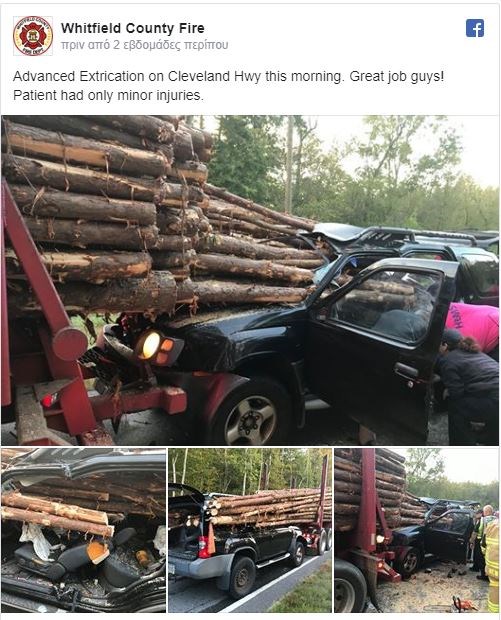 Οι πυροσβέστες χρησιμοποίησαν αλυσοπρίονα για να απεγκλωβίσουν τον οδηγό. Τους πήρε περίπου 10 με 15 λεπτά για να το πετύχουν.