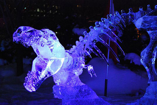 Τα περισσότερα από τα γλυπτά που ακολουθούν, έχουν κατασκευαστεί για διαγωνισμούς και φεστιβάλ πάγου που γίνονται ανά τον κόσμο.