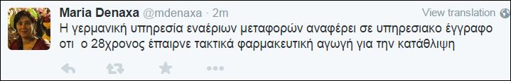 Όπως αναφέρει η ελληνίδα δημοσιογράφος, ανταποκρίτρια από το Παρίσι, Μαρία Δεναξά, «Η γερμανική υπηρεσία εναέριων μεταφορών αναφέρει σε υπηρεσιακό έγγραφο ότι ο 28χρονος έπαιρνε τακτικά φαρμακευτική αγωγή για την κατάθλιψη».