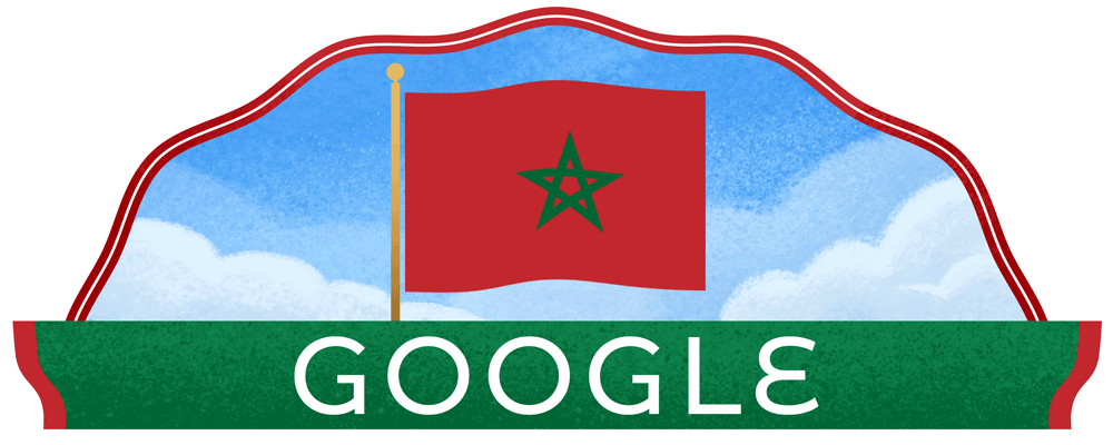 Στο Μαρόκο, οι άνθρωποι γιορτάζουν την εθνική εορτή απολαμβάνοντας παρελάσεις και κυματίζοντας μαροκινές σημαίες όπως αυτή που παρουσιάζεται στο σημερινό Doodle. Η σημαία έχει ένα πράσινο πεντάκτινο αστέρι σε ένα πεδίο με κόκκινο χρώμα, που συμβολίζει τη δύναμη και τη γενναιότητα.