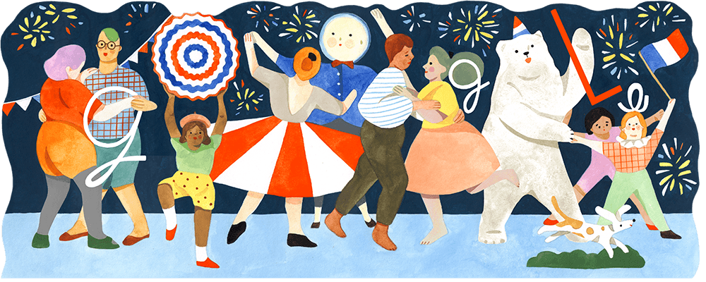 Το σημερινό Doodle της Google γιορτάζει την Ημέρα της Βαστίλης, επίσης γνωστή ως la Fête de la Fédération (Φεστιβάλ της Ομοσπονδίας) και le Quatorze Juillet (14 Ιουλίου) στη Γαλλία και εικονογραφείται από την καλλιτέχνιδα Julia Spiers με έδρα το Παρίσι.
