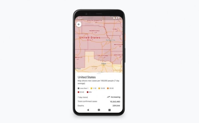 Από τότε που εντάχθηκαν στα Google Maps οι ενημερώσεις για τον κορονοϊός, σχεδόν 10 εκατομμύρια άτομα απέκτησαν απευθείας πρόσβαση σε βασικές πληροφορίες σχετικά με την πανδημία. Ο χάρτης COVID-19, που προστέθηκε σε Android και iOS, σύντομα θα εμφανίζει περισσότερες πληροφορίες, όπως αναφορές για κρούσματα που εντοπίστηκαν στην περιοχή σας, καθώς και συνδέσμους με ενημερώσεις από τις τοπικές αρχές. Αυτό είναι ιδιαίτερα χρήσιμο εάν, σε περίπτωση που είναι δυνατόν, σκοπεύετε να βγείτε από την πόλη και πρέπει να είστε ενήμεροι για όλες τις τοπικές οδηγίες, τα σημεία όπου γίνονται έλεγχοι, ή για άλλους πιθανούς περιορισμούς που επιβάλλονται στην εκάστοτε πόλη.