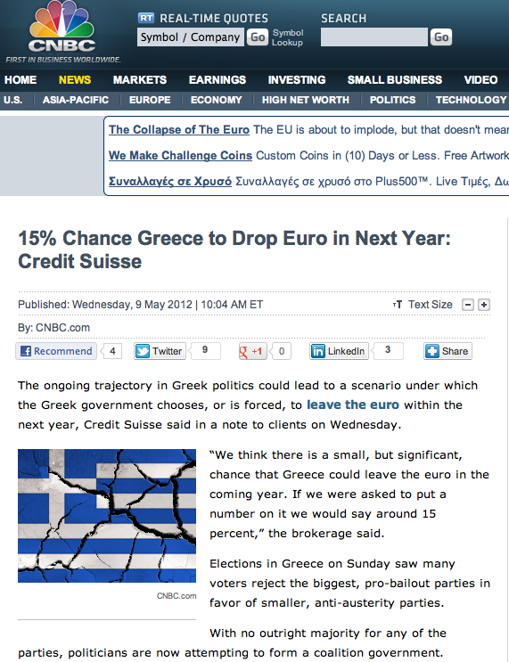 CNBC: “15% πιθανότητα για την έξοδο της Ελλάδας από το ευρώ μέσα στο επόμενο έτος: Σύμφωνα με την Credit Suisse”