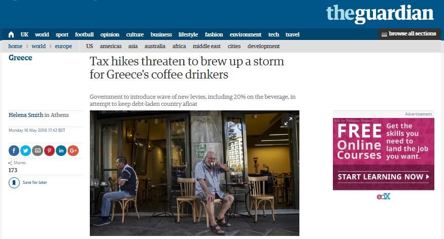 Οι Έλληνες έρχονται αντιμέτωποι με όλο και περισσότερους φόρους καθώς η κυβέρνηση προσπαθεί να ικανοποιήσει τα αιτήματα των δανειστών προκειμένου να λάβει το πακέτο βοήθειας, αναφέρει σε δημοσίευμα του ο Guardian.